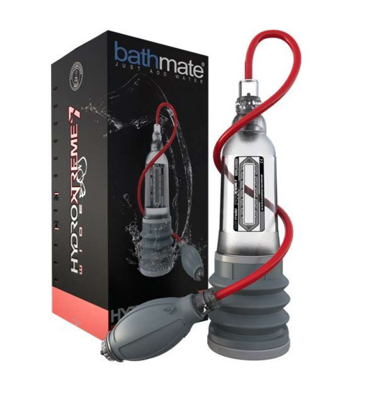 HydroXTREME7 Wide Boy - модель с увеличенным диаметром гидропомпы. Эту модель приобретают мужчины, которым не подходит модель HydroXTREME7 в диаметре. Длина модели такая же как у HydroXTREME7, но диаметр, как у увеличенной модели HydroXTREME9. Гидропомпа является безопасным средством увеличения полового члена в домашних условиях. Самая действенная гидротехнология для увеличения пениса и укрепления вашего сексуального здоровья. Новый клапан HydroXTREME5 позволяет создавать давление как при помощи гофры, прижимая колбу к себе, так и с помощью ручной груши. Помпа также оснащена переключателем для быстрого сброса воды и фиксации разряжения и функцией поворота колбы. В комплект также входит ремень для душа, что позволяет облегчить использование гидропомпы в душе и оставить ваши руки свободными. Помпа абсолютно безопасна, проста в использовании и эффективна – она удобно крепится на основании пениса, не вызывая дискомфорта, и создает достаточное давление для эффективных тренировок, не требуя постоянной подкачки. В отличие от других вакуумных помп гидропомпы Bathmate использует силу воды, поэтому его нужно использовать в ванной или душе. Благодаря гидропомпе: - происходит усиленный прилив крови к тканям паховой области, каверозным телам, в следствие чего увеличивается длина и диаметр полового члена - эрекция пениса становится более выраженной и продолжительной - ваш пенис будет более сильным - при регулярном использовании происходит увеличение пениса на 2-3 см. Чем чаще Вы пользуетесь Bathmate, тем большим будет результат. На колбе помпы имеется специальная шкала - с ей результаты будут еще нагляднее. Помпа бесшумна. Начальные размеры пениса (в эрекции) до покупки помпы: Длина пениса - до 18 см. Диаметр пениса - до 5,6 см. Параметры гидропомпы: Длина с сильфон-насосом (общая длина) - 26 см. Длина без сильфон-насоса (длина колбы) - 22,5 см. Внутренний диаметр колбы - 6,3 см. Внутренний диаметр сильфон-насоса - 6,7 см. Мощность - 0,7 бар.