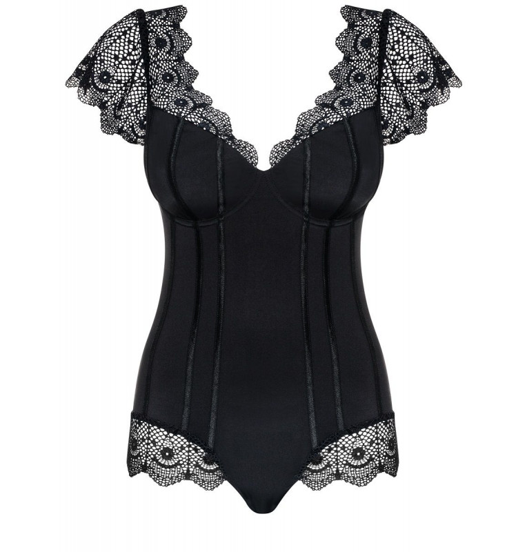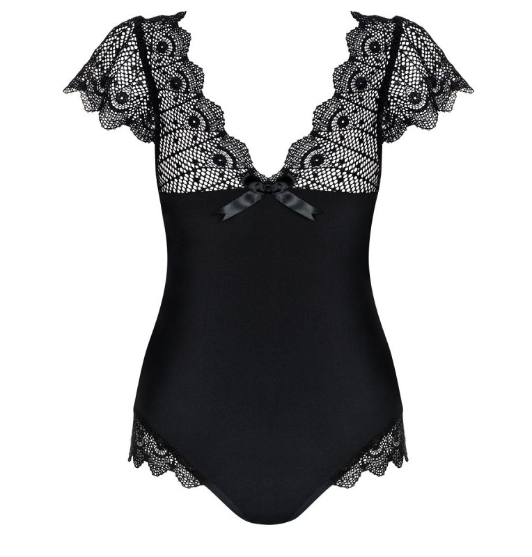 Боди Moketta с сетчатыми вставками и коротенькими рукавчиками.