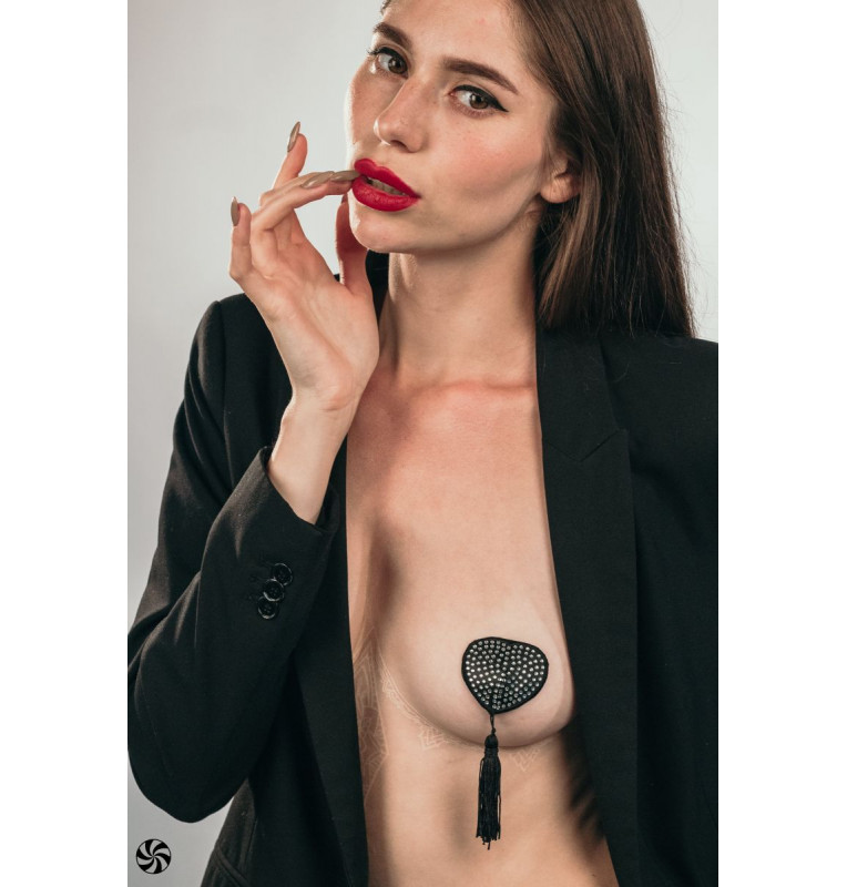 Черные пэстисы-сердечки Evans с кисточками и стразами