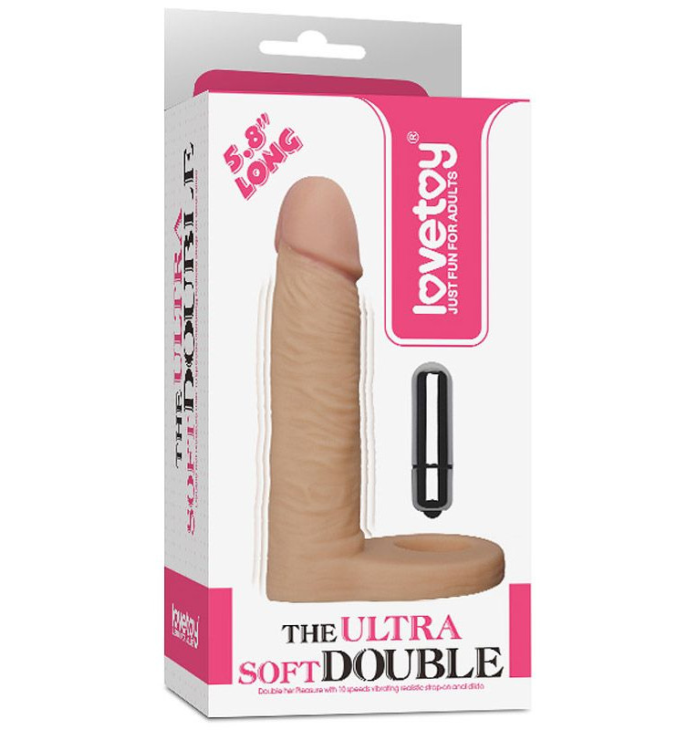 Фаллоимитатор для двойного проникновения с кольцом под мошонку и вибрацией (10 скоростей).