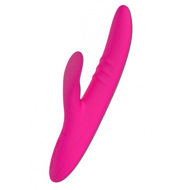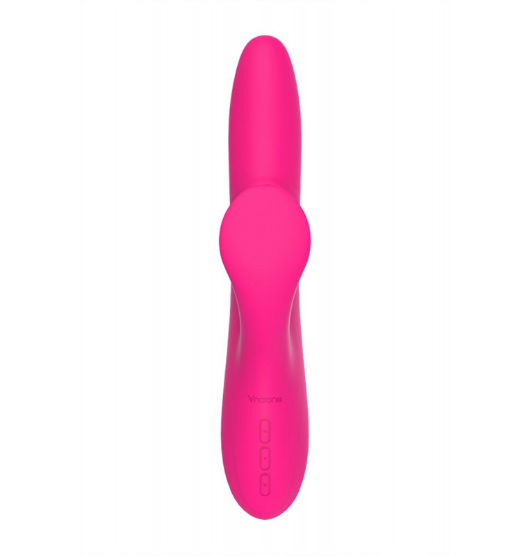 Розовый вибратор с клиторальным стимулятором Nalone Peri -  23,3 см.