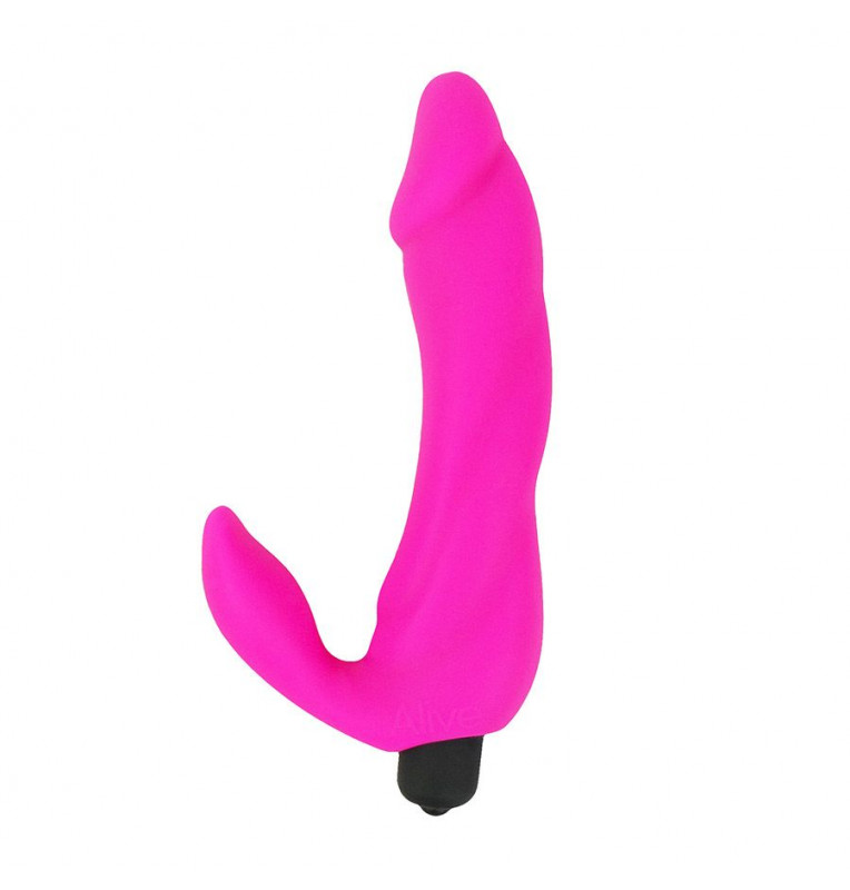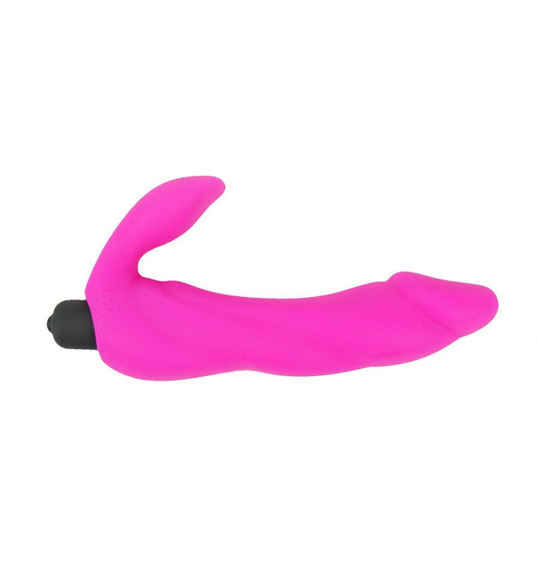 Розовый вибратор с клиторальным отростком Bifun. Рабочая длина - 10,5 см.