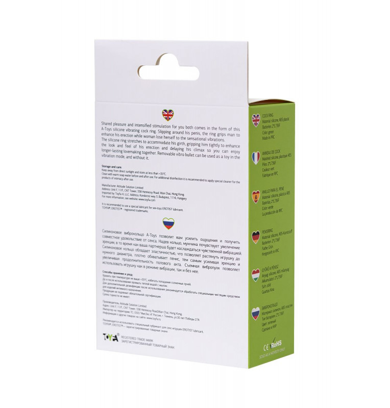 Силиконовое виброкольцо А-Toys позволит вам усилить ощущения и получить совместное удовольствие от секса. Надев кольцо, мужчина почувствует увеличение эрекции, в то время как ваша партнерша будет наслаждаться чувственной вибрацией. Силиконовое кольцо обладает эластичностью, что позволяет растянуть игрушку до нужного диаметра, плотно обхватывает пенис, тем самым усиливая эрекцию и увеличивая продолжительность полового акта. Съемная вибропуля позволяет использовать игрушку как в режиме вибрации, так и без нее.