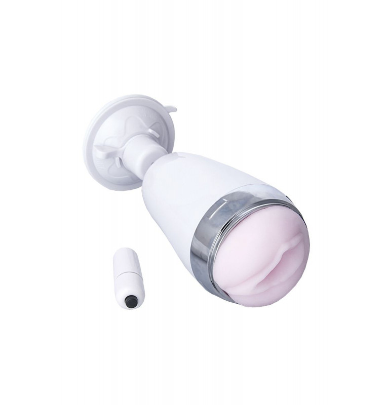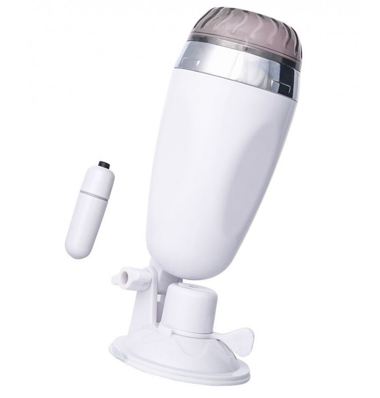 Мастурбатор-вагина в белой колбе с присоской и встраиваемой вибропулей