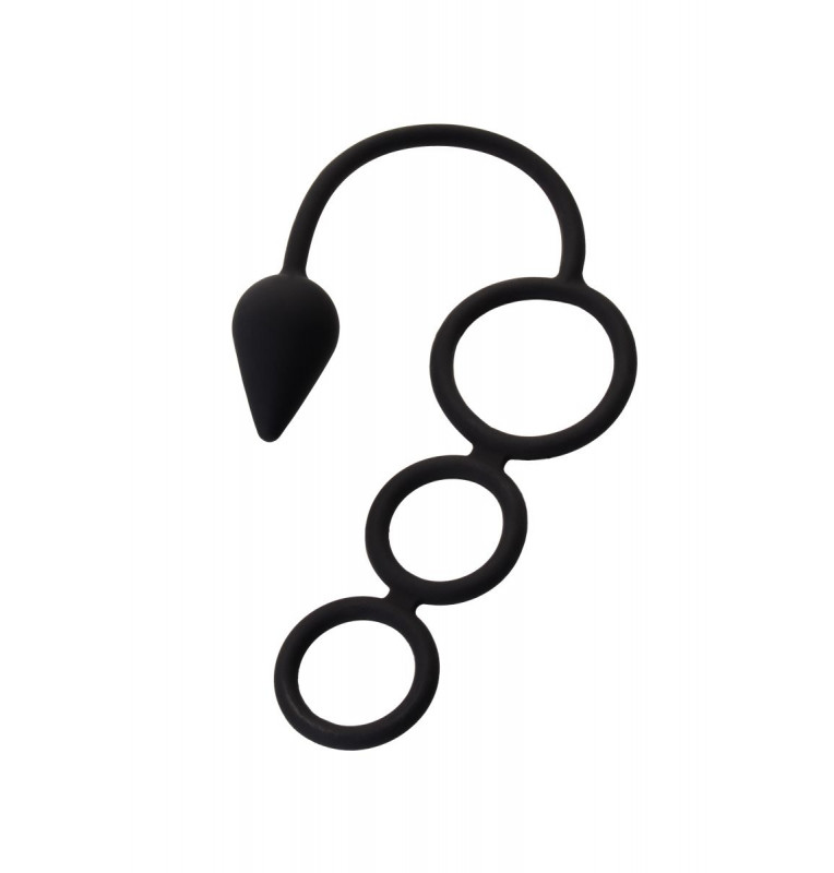 Эрекционное кольцо с дополнительной стимуляцией — это игрушка 3-в-1. Она делает мужскую силу масштабнее, а удовольствие объемнее. Конусообразная анальная пробка дарит превосходную анальную стимуляцию и эффективный массаж простаты. Эластичное эрекционное кольцо с поддержкой для мошонки усиливает эрекцию и продлевает эякуляцию. Длина пробки - 5 см., ширина - 3 см. Диаметр колец - 4, 3 и 3 см.