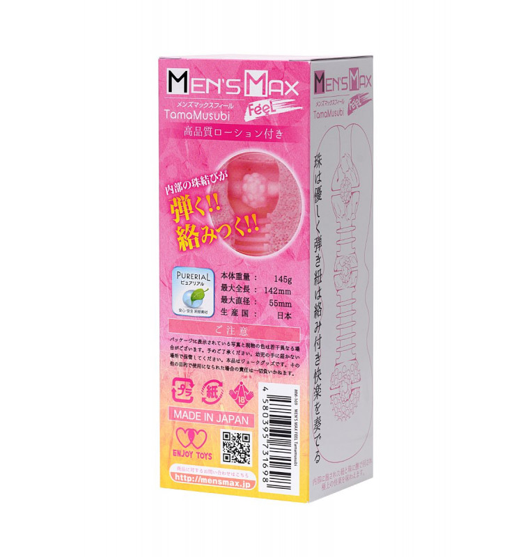 Массивная атака удовольствием — именно так мужчины описывают ощущения, которые вызывает мастурбатор MensMax Feel TamaMusubi. Действительно, невозможно не оценить эффектный мультирельеф этого девайса. Вы тоже будете в восторге. Внутренняя поверхность игрушки покрыта упругими ребрышками, которые плотно обхватывают член по всей длине и активно массируют его на протяжении всего процесса.У входа в тоннель, в его центре и в конце расположены 3 рельефных шарика на эластичных струнах. Они искусно ласкают пенис, уделяя внимание каждой мышце и венке, и доводят до бурного оргазма за считанные минуты. В конце тоннеля ваш член ждут рельефные пузырьки, которые пробуждают нервные окончания на головке и в разы усиливают мощность сексуальной разрядки. Гипоаллергенный материал PureReal имитирует нежную женскую кожу и делает каждое прикосновение максимально реалистичным.Реальное наслаждение приходит вместе с MensMax Feel TamaMusubi.