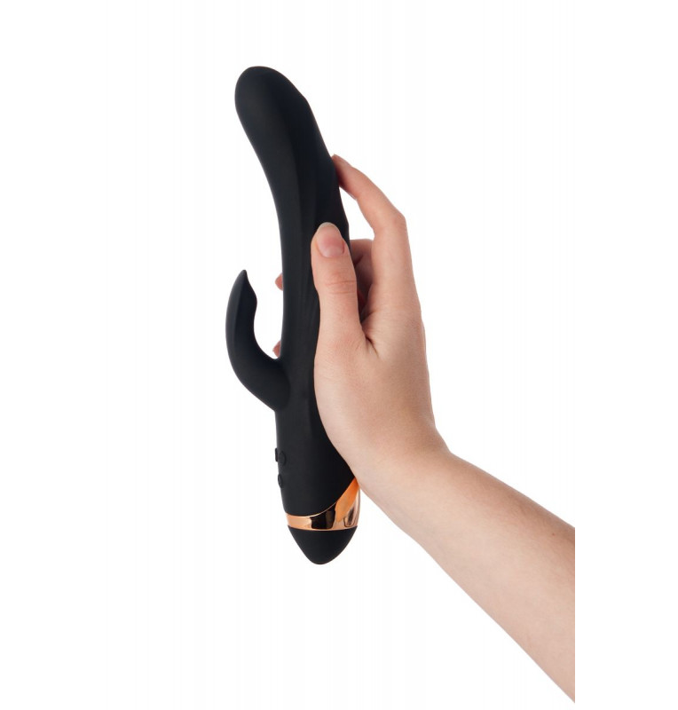 Чёрный вибратор WANAME Thunder с клиторальным отростком - 24,2 см.