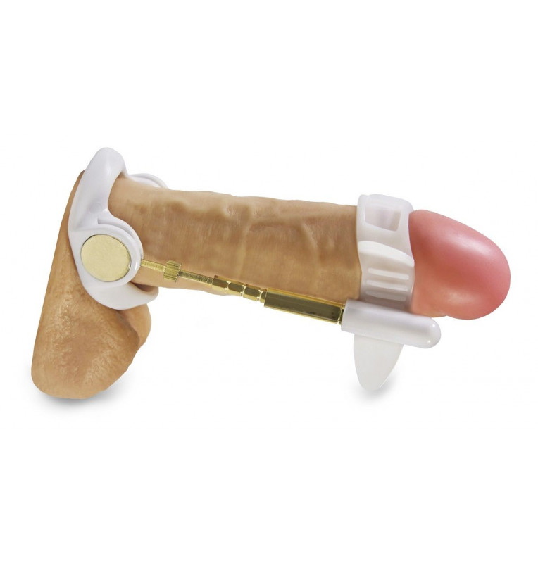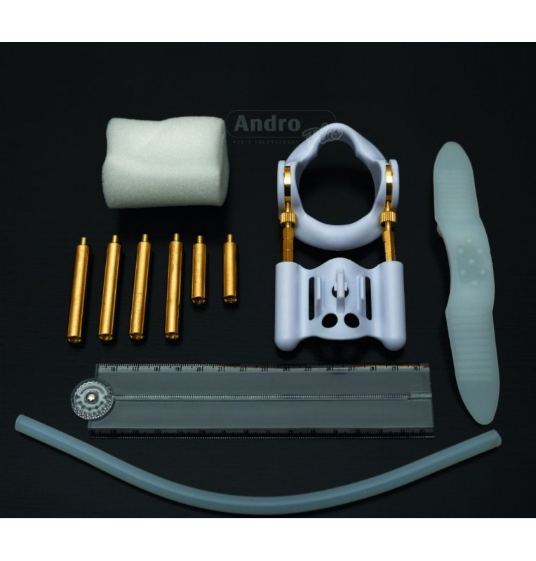 Вы недовольны размером своего пениса и ищете действенный, безоперационный метод его увеличения? Профессиональный аппарат экстендер Androplus поможет вам легко и безболезненно увеличить половой член в домашних условиях. Рекомендовано докторами! Экстендер – это прибор, способный увеличить размеры пениса без боли и дорогостоящих операций. При этом, аппарат дает не временный, а постоянный результат – достигнув определенных размеров члена, вы навсегда станете их обладателем. Действие аппарата основано на силе растяжения: под воздействием прибора пещеристые тела и связки растягиваются, что вызывает постепенный рост новых клеток, а значит – увеличение пещеристых тел в объеме. Результатом такого воздействия является то, что пещеристые тела могут вобрать в себя больше крови при наступлении эрекции. При этом, на качество эрекции и оргазма это никак не отражается. Вставьте член в кольцо экстендера так, чтобы оно оказалось у основания пениса. Отрегулируйте высоту штанг, при необходимости добавьте стержни для создания идеальной длины прибора. Поместите головку на пластмассовой опоре и зафиксируйте с помощью силиконового жгута. Надевать прибор следует на пенис в расслабленном состоянии и носить его не менее 4 часов в день ежедневно на протяжении 4-6 месяцев. Продолжительность ношения прибора можно увеличить в зависимости от результата, которого вы желаете достичь. Аппарат рекомендуется носить только днем. Ночью прибор необходимо снимать в связи с непроизвольной эрекцией и замедленной работой организма. Маленький размер аппарата позволяет носить его вне дома. Он совершенно незаметен под одеждой, поэтому вы легко можете надевать его, отправляясь на работу. Кому будет полезен прибор Androplus? Мужчинам, желающим безболезненно и без операции увеличить размеры полового члена страдающим искривлением пениса тем, у кого есть болезнь Пейрони. Аппарат совершенно безопасен для вашего здоровья! Все детали прибора сделаны из гипоаллергенных материалов: клинические испытания показали, что материалы безопасны для людей, страдающих аллергией на различные металлы и сплавы. В комплекте: пластмассовое основательное кольцо для вставки члена, пластмассовая опора, латунные штанги (6 шт.), маленькие стержни для удлинения штанги (6 шт.), удлиняющий силиконовый жгут, винты для фиксации пружины (2 шт.), защитная подушка, силиконовый ремешок для фиксации, измерительная линейка (раскладывается до 30 см.).