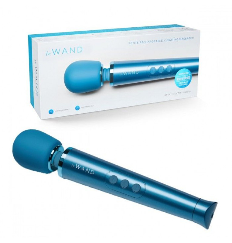 Синий жезловый мини-вибратор Le Wand c 6 режимами вибрации