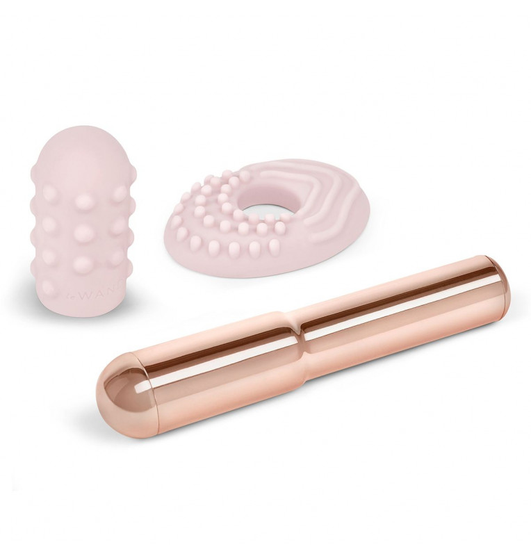 Пудровый жезловый вибратор Le Wand Grand Bullet с двумя нежными насадками
