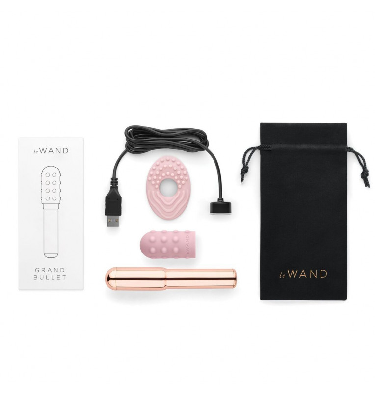 Le Wand Grand Bullet - это увеличенная версия мини-пули от Le Wand. Для тех, кто хочет еще больше и сильнее, потому что Grand Bullet на 40% мощнее, чем его меньший аналог и подходит для продвинутых любителей игрушек, которые знают что нужно их телу. 11 режимов вибрации и 4 уровня интенсивности докажут вам, что здесь размер не имеет значения. Элегантный и простой в использовании гаджет легко управляется одним нажатием в нижней части корпуса - уровни и режимы вибрации управляются одной кнопкой. Также он полностью выполнен из безопасного металла, поэтому вы можете погружать его в воду до 30 минут. Поставляется в комплекте с двумя съемными текстурированными силиконовыми насадками, которые усилят ваши ощущения и позволят использовать пулю для внешней и внутренней стимуляции. Заряжается с помощью магнитной зарядки - Просто подключите USB-разъем к вашему компьютеру или зарядному устройству и закрепите магнитную головку на пульке. Полная зарядка даст вам 1 час игры. В наборе есть бархатная сумочка, которая позволяет взять игрушку с собой и сделать ее забавной частью того, что вы носите в сумке каждый день. Очень тихий мотор и возможность заблокировать игрушку в путешествии.