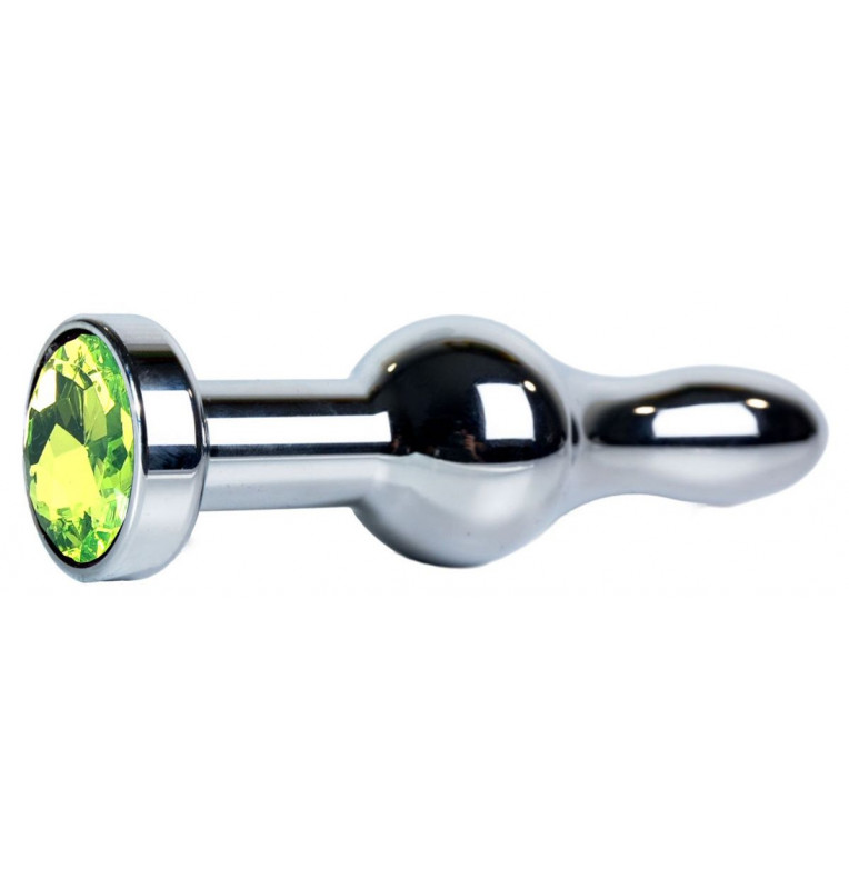 Серебристая каплевидная анальная пробка с лаймовым кристаллом - 10,5 см.