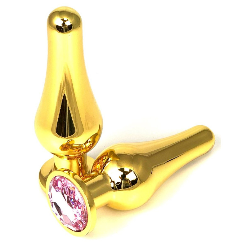 Золотистая втулка в виде наконечника стрелы с эффектным стразом. Идеальная форма для ввода и удерживания внутри для опытных пользователей. Рабочая длина - 10,5 см. Минимальный диаметр - 2 см. Вес - 189 гр.