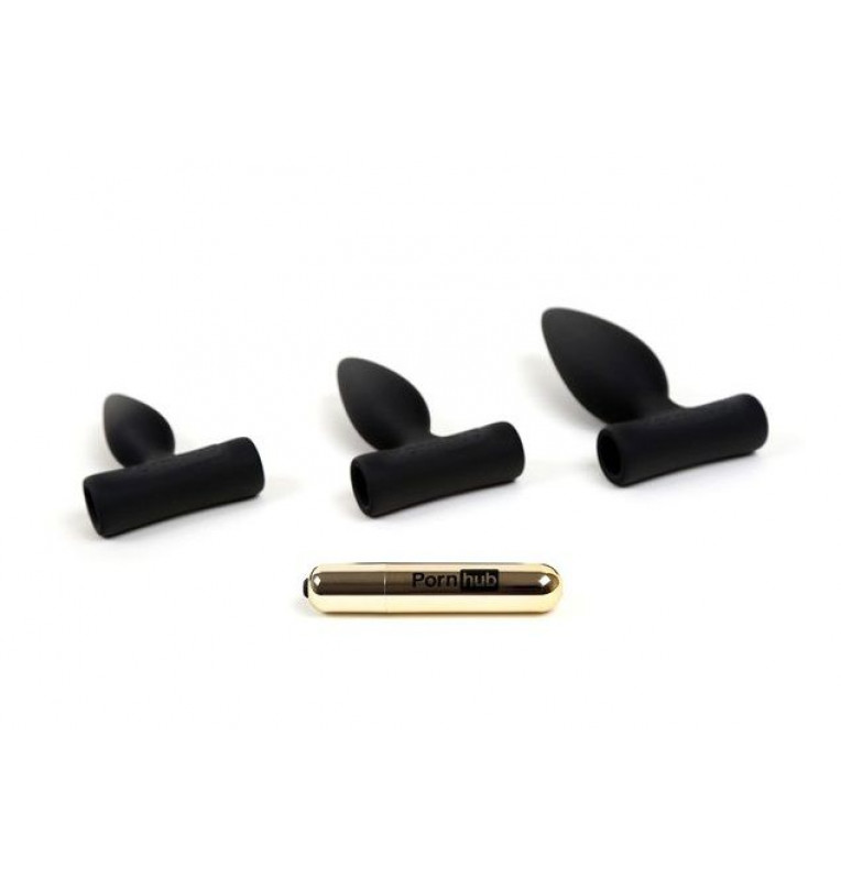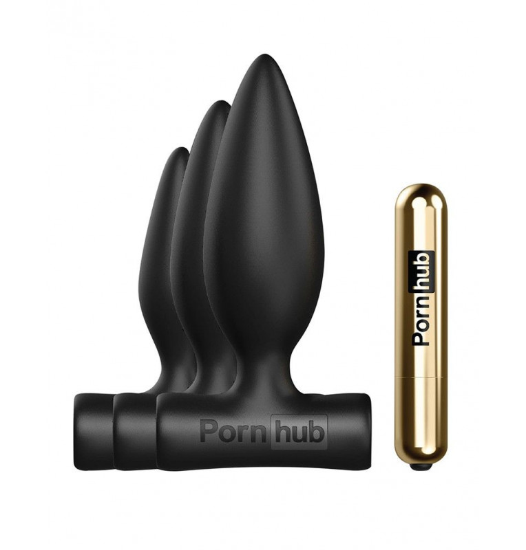 Набор анальных втулок от всемирно известного бренда Pornhub откроет для вас мир анальных наслаждений. В комплект входят три втулки разных размеров для постепенной тренировки мышц ануса и мощная вибропуля, которую можно вставить в основание-кармашек каждой втулки. Наконечник конической формы и покрытие из нежного гипоаллергенного силикона сделают проникновение легким и приятным, а широко основание обеспечит безопасность при использовании. 10 режимов вибрации. Длина большой пробки - 13 см., диаметр - 3,8 см. Длина средней пробки - 11,5 см., диаметр - 3,2 см. Длина средней пробки - 10 см., диаметр - 2,7 см.