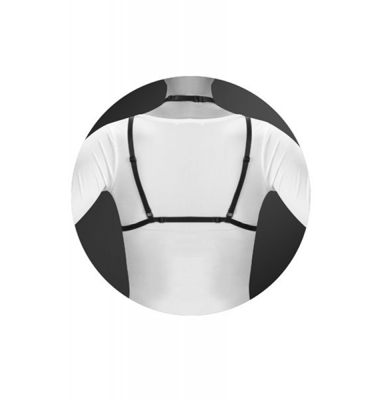Упряжь на грудь на регулируемых ремешках. Сзади удобная застежка.