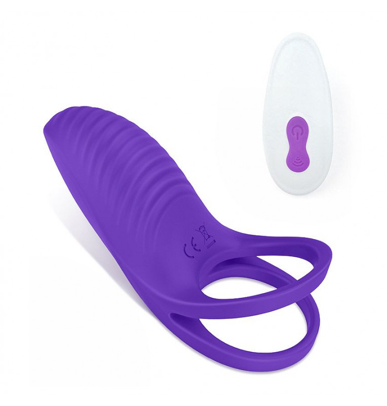 Фиолетовое эрекционное виброкольцо на пенис с пультом