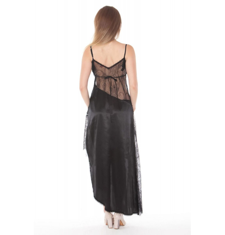 Длинная полупрозрачная кружевная сорочка со вставками