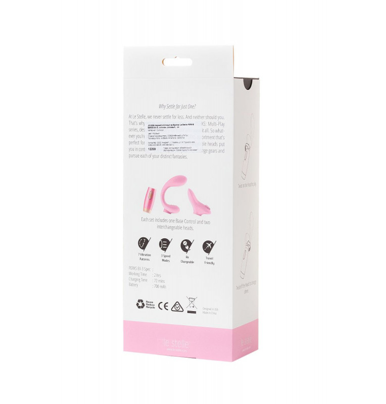 Le Stelle Perks – коллекция для тех, кто не хочет довольствоваться малым. Мощный G-Spot + клиторальный вибратор с моторами на каждом из отростков. Эргономичный дизайн позволяет стимулировать точку G для яркого вагинального оргазма, а дополнительный клиторальный стимулятор с ребристой поверхностью позволит расширить спектр ощущений. Смените насадку, и вы получите клиторальный вибратор, разработанный специально для наружной и точечной стимуляции. Мягкие щетинки из нежнейшего силикона подарят вам неведанные до этого удовольствия. Замена насадки производится парой простых движений, а 7 вариантов вибрации, регулятор скорости и полная водонепроницаемость сделают ваши оргазмы еще ярче.