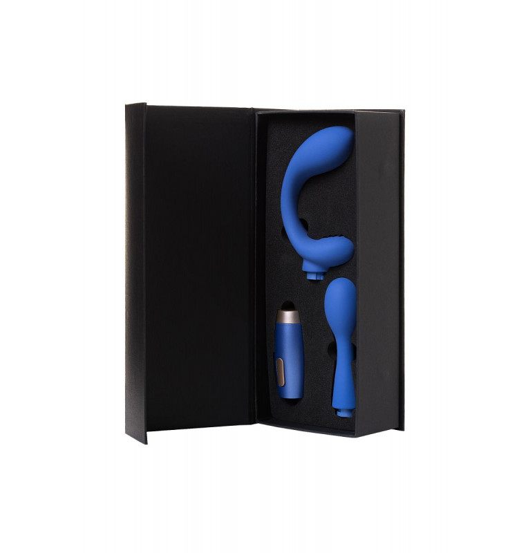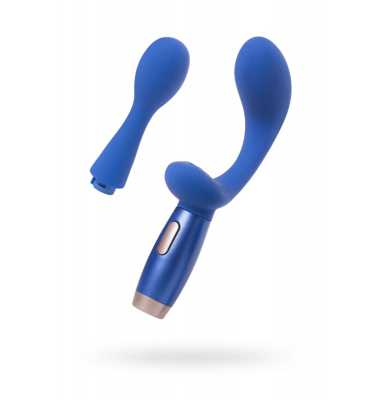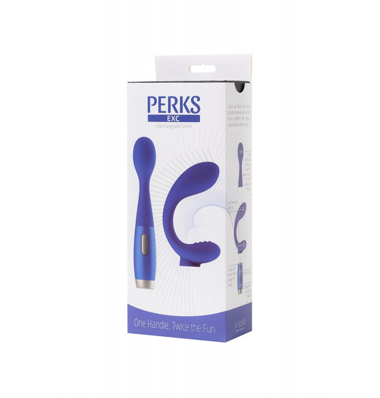 Синий вибратор Le Stelle PERKS SERIES EXC с 2 сменными насадками
