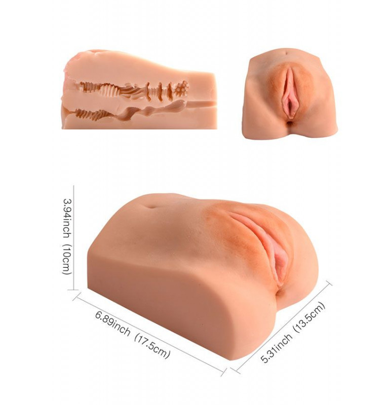 Великолепная секс-игрушка с двумя функциональными отверстиями максимально реалистично имитирует самые пикантные части женского тела - половые губы, ягодицы, анальное отверстие. Размеры - 17,5 х 13,5 х 10 см.