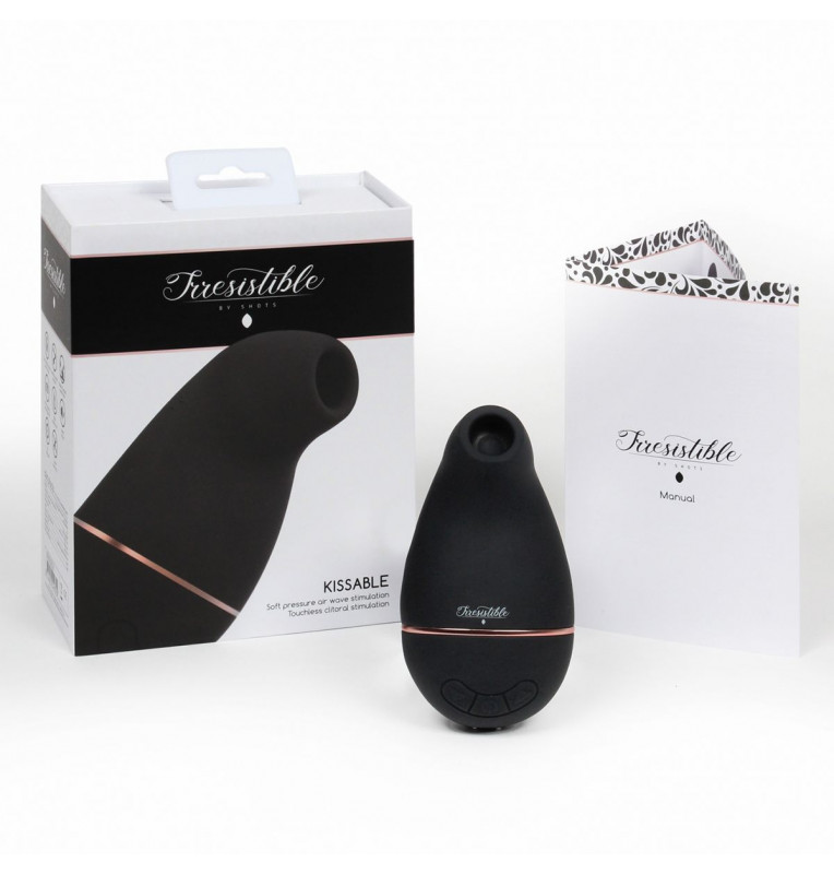 Черный клиторальный вакуум-волновой массажер Irresistible Kissable