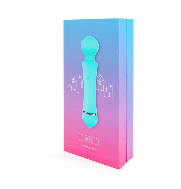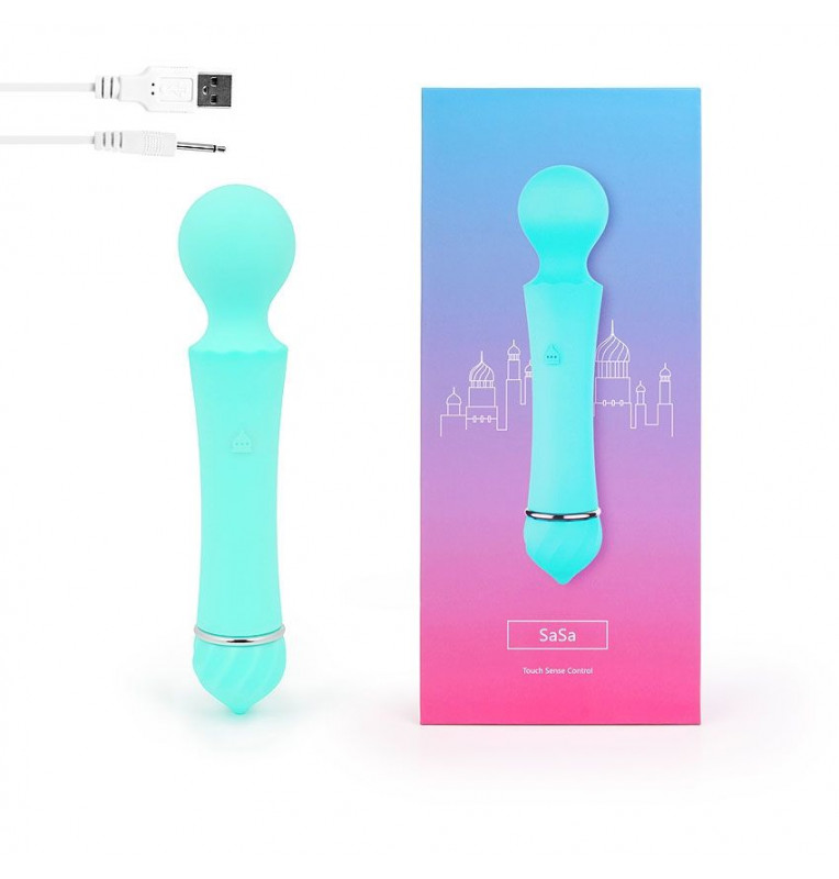 Бирюзовый вибромассажер Sasa с круглой головкой - 16 см.