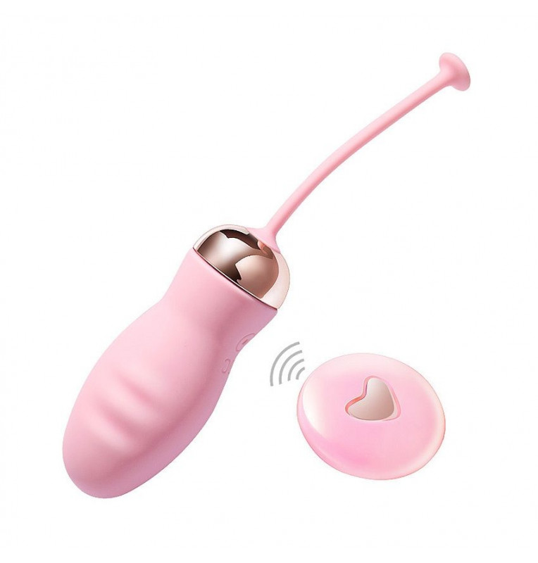 Розовое ребристое виброяйцо с пультом ДУ