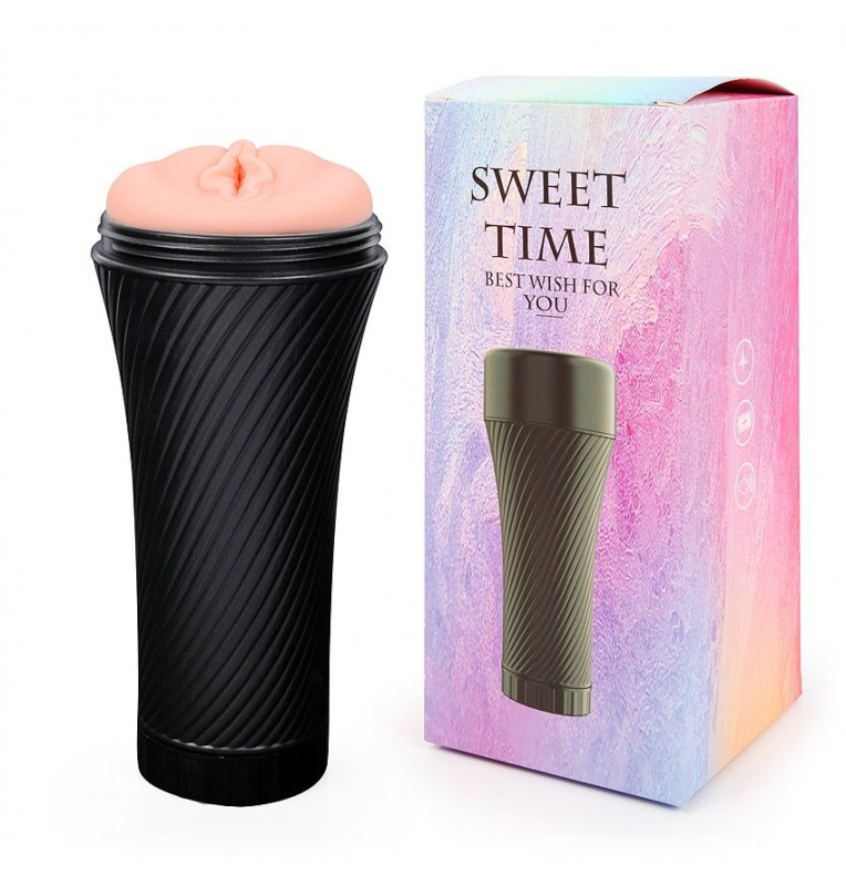 Телесный мастурбатор-вагина Sweet Time в черной колбе