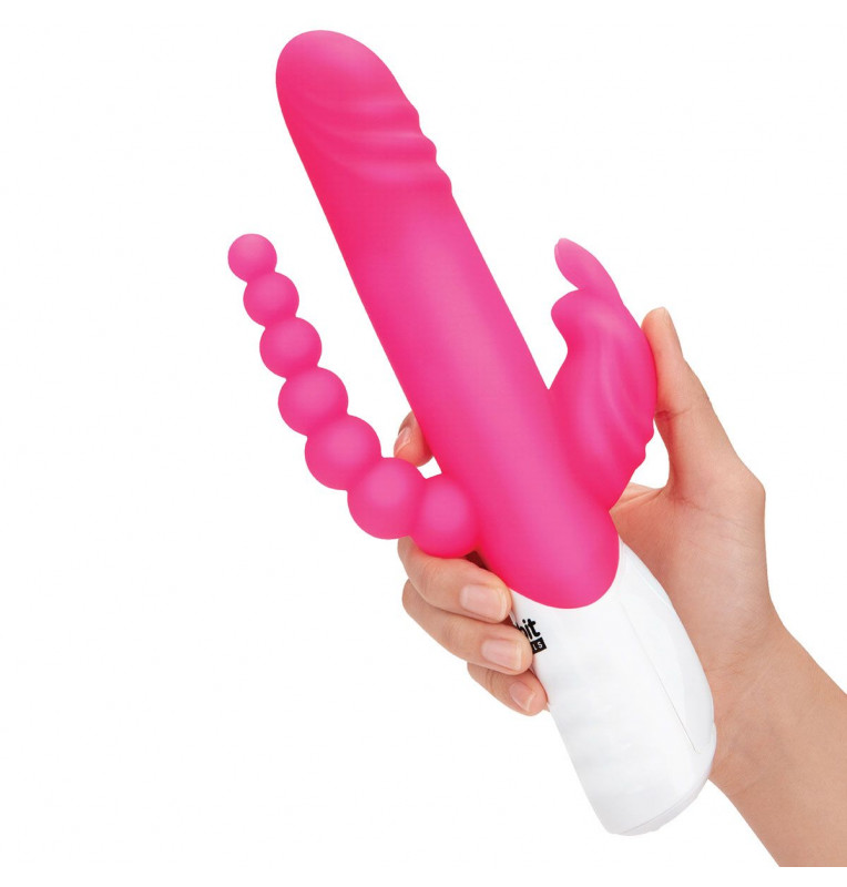 Розовый вибратор-кролик с анальным стимулятором - 26 см.