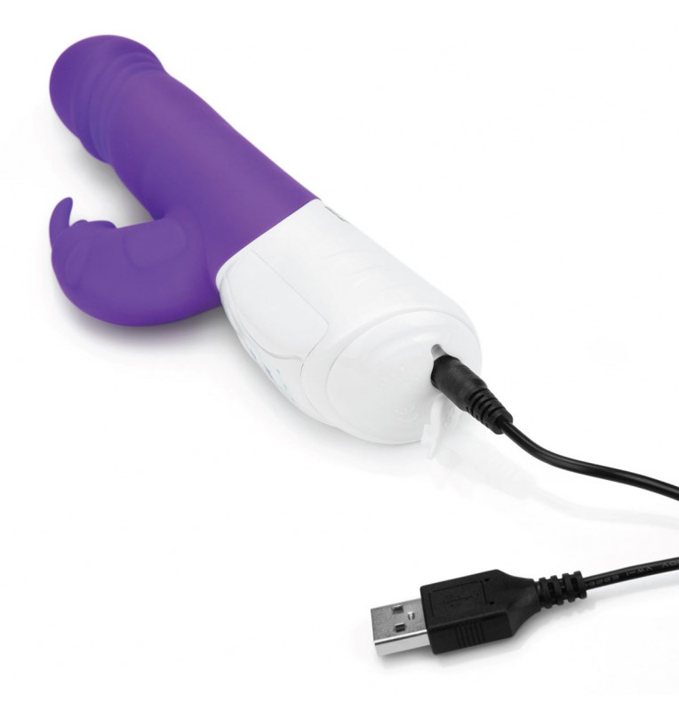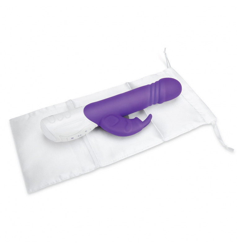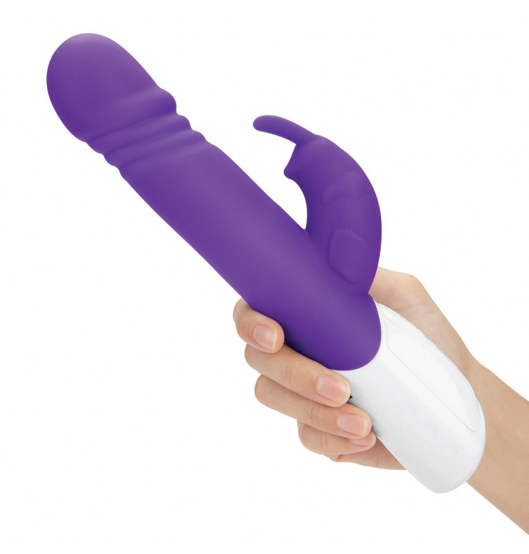 Фиолетовый вибратор-кролик с возвратно-поступательными движениями головки - 24 см.