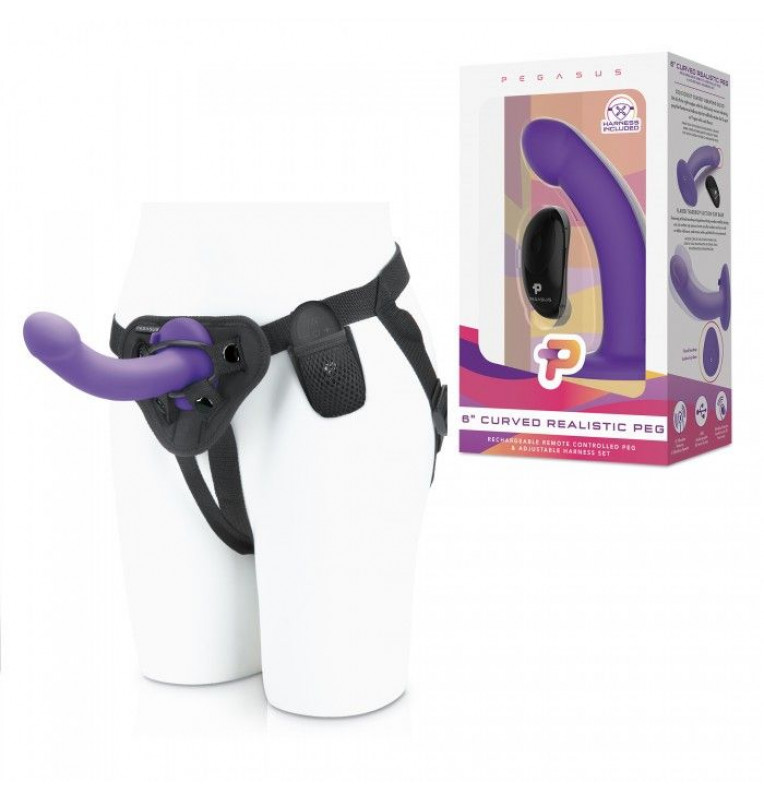 Вы сможете стимулировать самые чувственные зоны, попадая точно в цель! Pegasus - это восхитительный изгиб вибрирующего фаллоса, который идеально подходит для стимуляции точки G или простаты. Игра с партнером или наедине с Pegasus - это легко. Используйте присоску у основания игрушки, чтобы разместить его на плоскости и использовать без помощи рук или прикрепите к регулируемым ремням в наборе, чтобы использовать как страпон для секса с партнером. Для еще более ярких ощущений - насладитесь вибрацией, которая управляется с пульта дистанционного управления в наборе. Нежный, гибкий и упругий силикон позаботиться о качестве ощущений, а режимы вибрации доведут до высших точек наслаждения! Заряжайте игрушку и испытывайте удовольствие бесконечно, даже когда находитесь в душе или ванной! В комплекте: страпон, пульт, 3 кольца, мешочек для хранения.