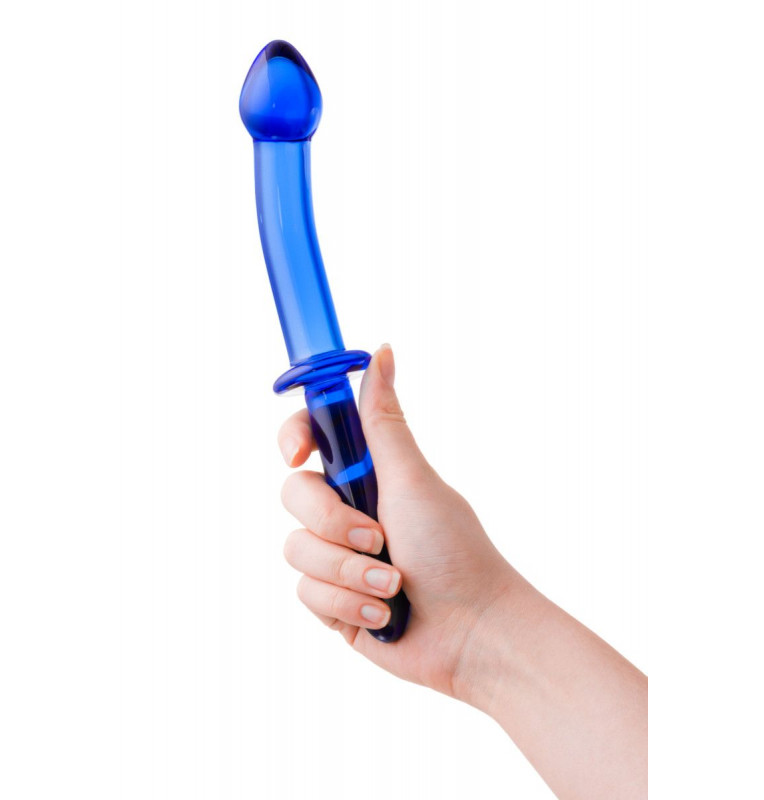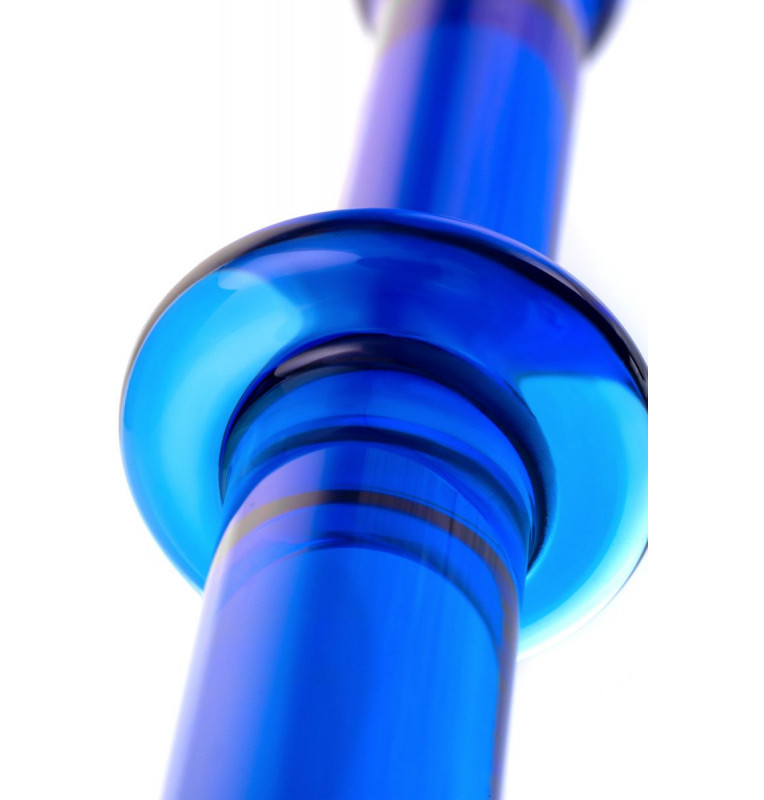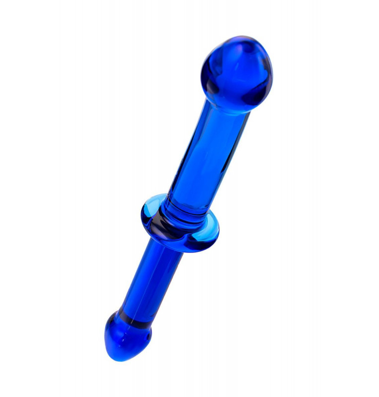 Анальный стимулятор из стекла небесно синего цвета. Популярная модель стеклянных игрушек - двойной фаллос с ограничительным основанием по середине. Одна половинка - небольшой фаллос с заостренной головкой, другая сторона-фаллос большего размера и диаметра. Изделие удобно держать и использовать, благодаря хорошему скольжению. Минимальный диаметр - 2,5 см.