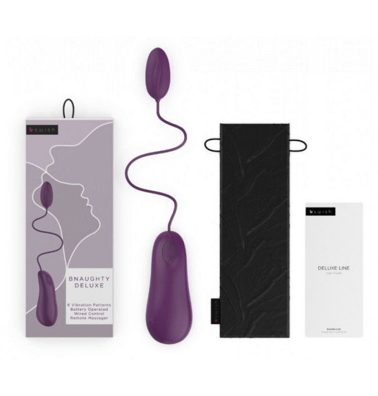 Виброяйцо Bnaughty Deluxe с пультом управления подходит для мягкой стимуляции эрогенных зон. Проводной пульт дистанционного управления облегчает использование игрушки и позволяет доверить управление партнеру.