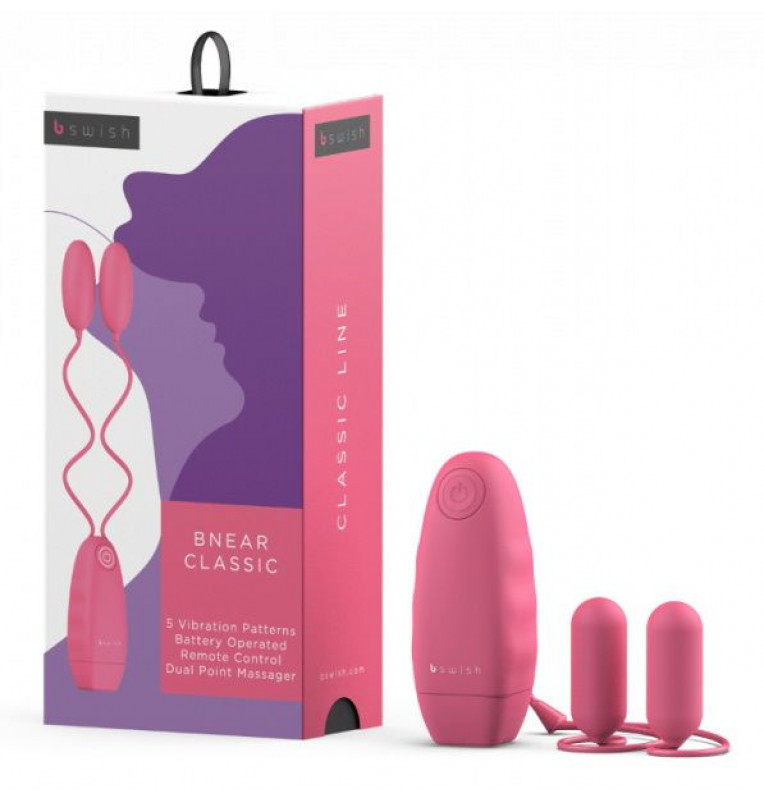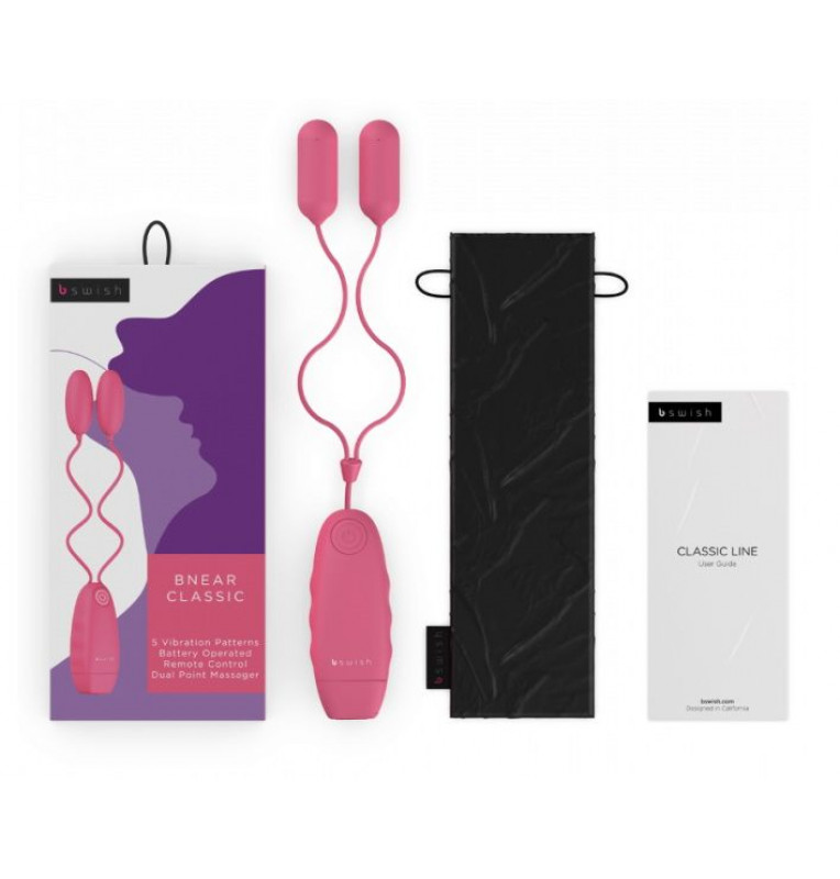 Розовые виброяйца Bnear Classic с пультом управления. 5 режимов пульсации и вибрации. Можно использовать для одновременной внешней и внутренней стимуляции.