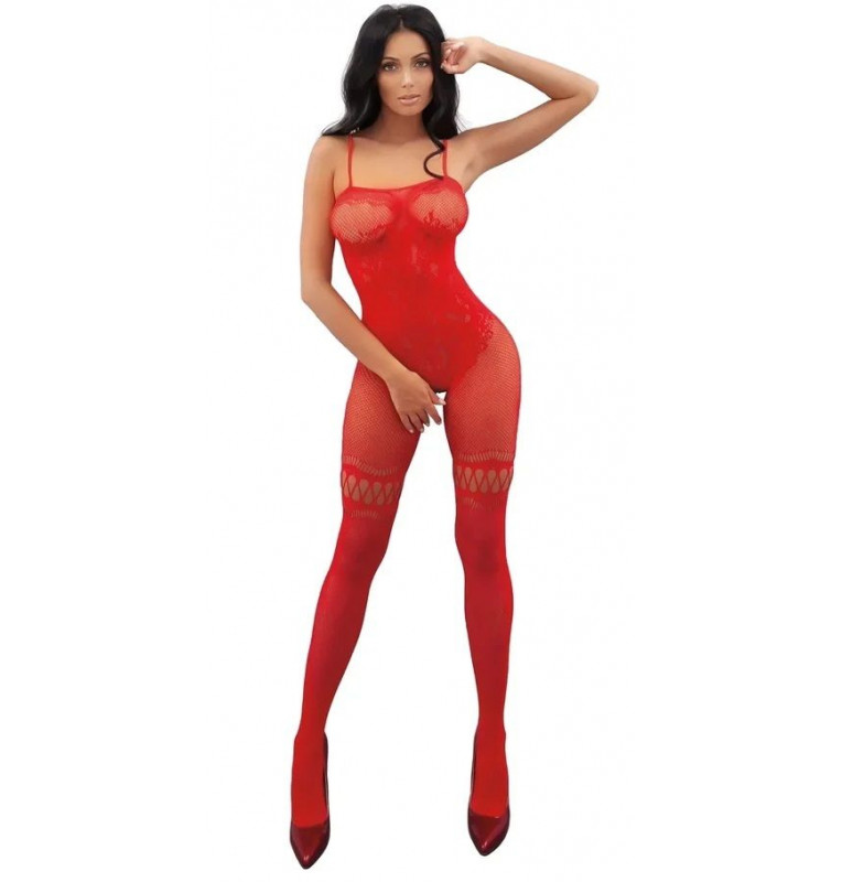 Valencia - боди-комбинезон с бретельками и открытым доступом. Дизайн в виде сетки дополнен V-образными вырезами на ножках, имитирующими чулки. Благодаря использованию большего количества нейлона, белье сохраняет очертания, не деформируется, растягивается и выгодно облегает фигуру. Даже после сильного растяжения, оно не деформируются, и всегда принимает исходную форму. Изделие не вызывает аллергию, не окрашивает. Уход и стирку следует производить в соответствии с инструкцией завода-изготовителя на этикетке. Трусики не входят в комплект!