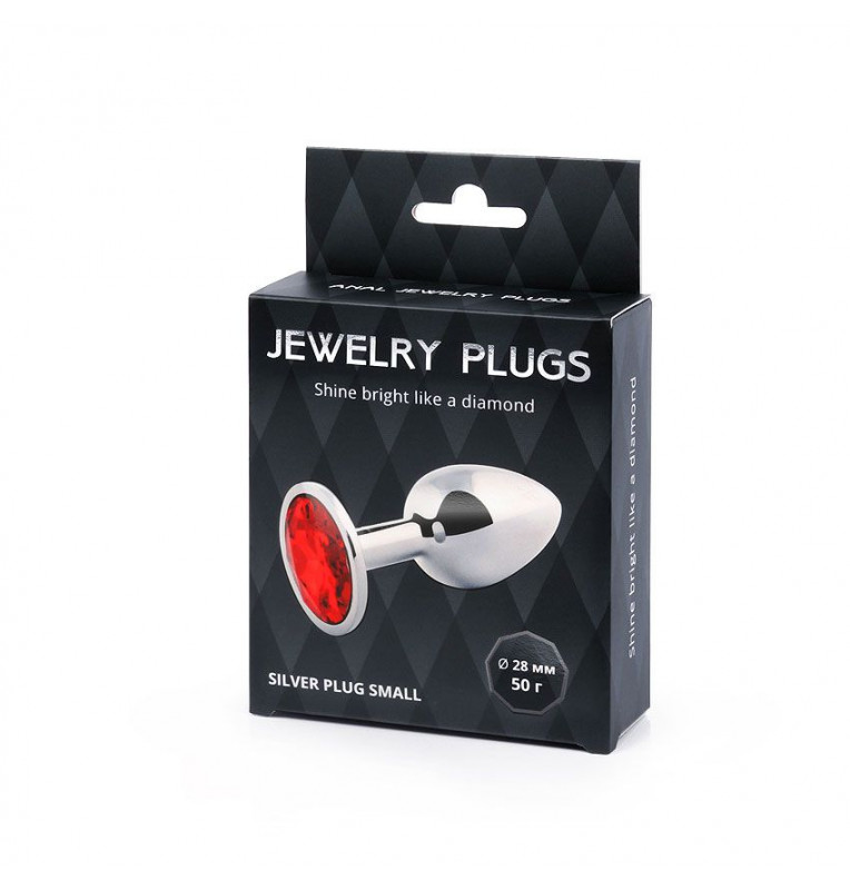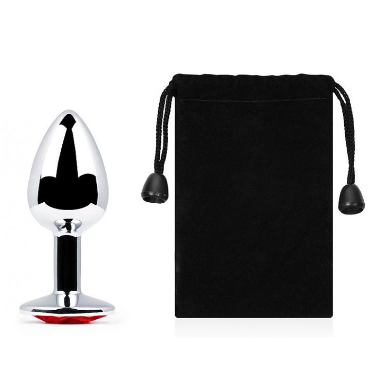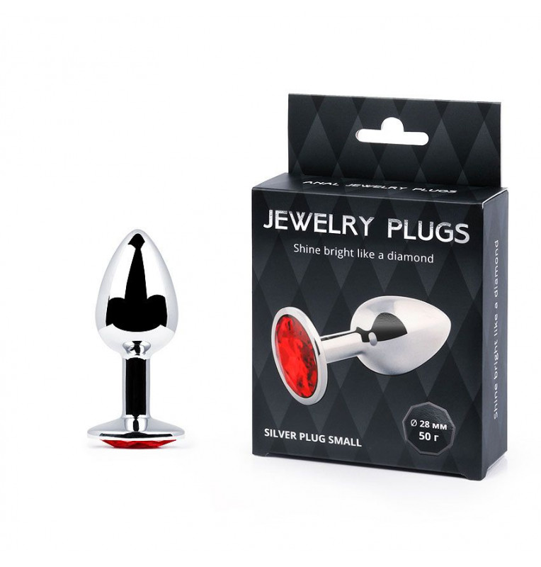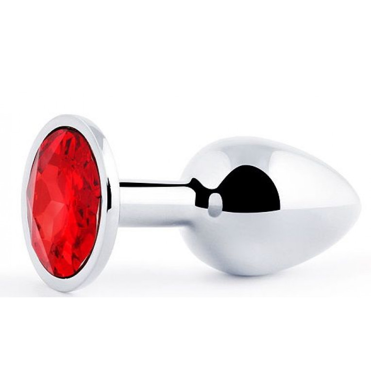 Серебристая анальная пробка с красным стразом - 7,2 см.