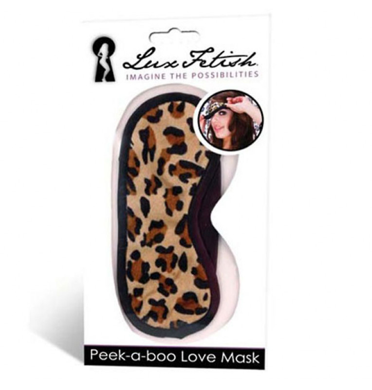Маска на глаза леопардовой расцветки с шелковистой черной подкладкой. Используйте маску для сна или для любовных игр - две резиночки не позволят внешнему миру помешать вашим снам или фантазиям. One Size.