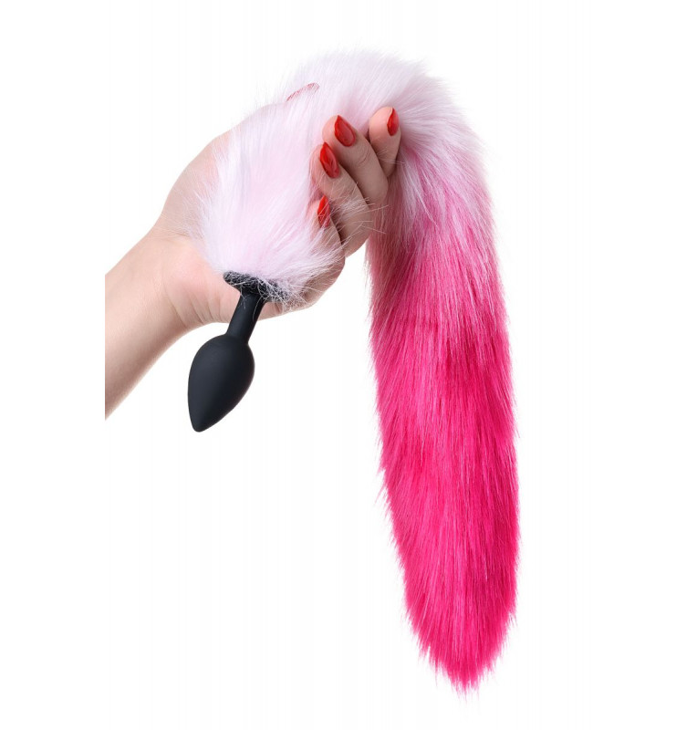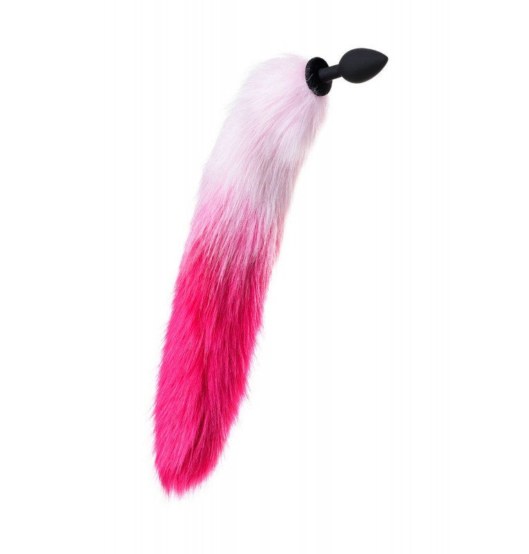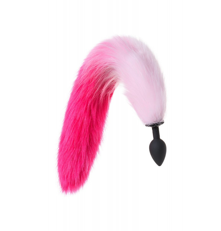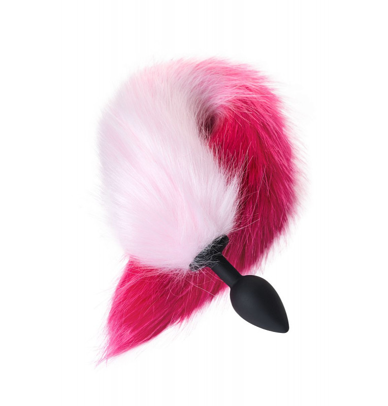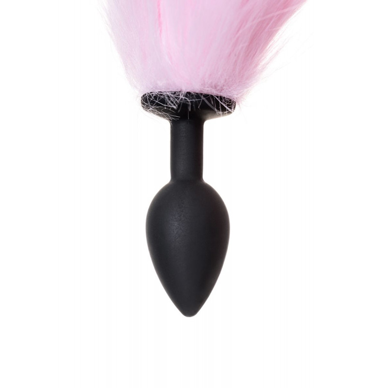 Черная анальная втулка с бело-розовым хвостиком - размер S