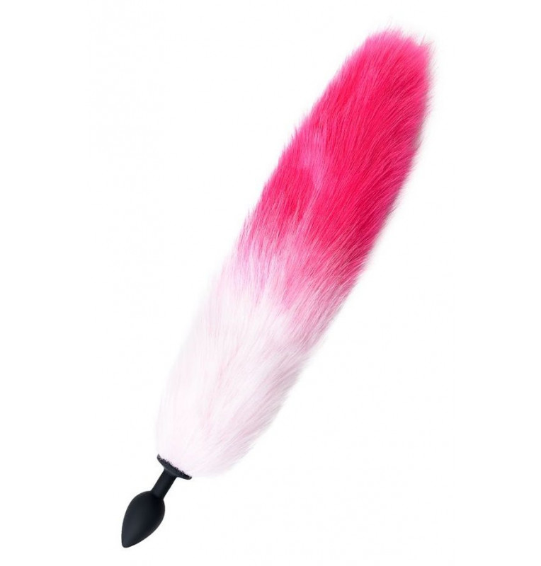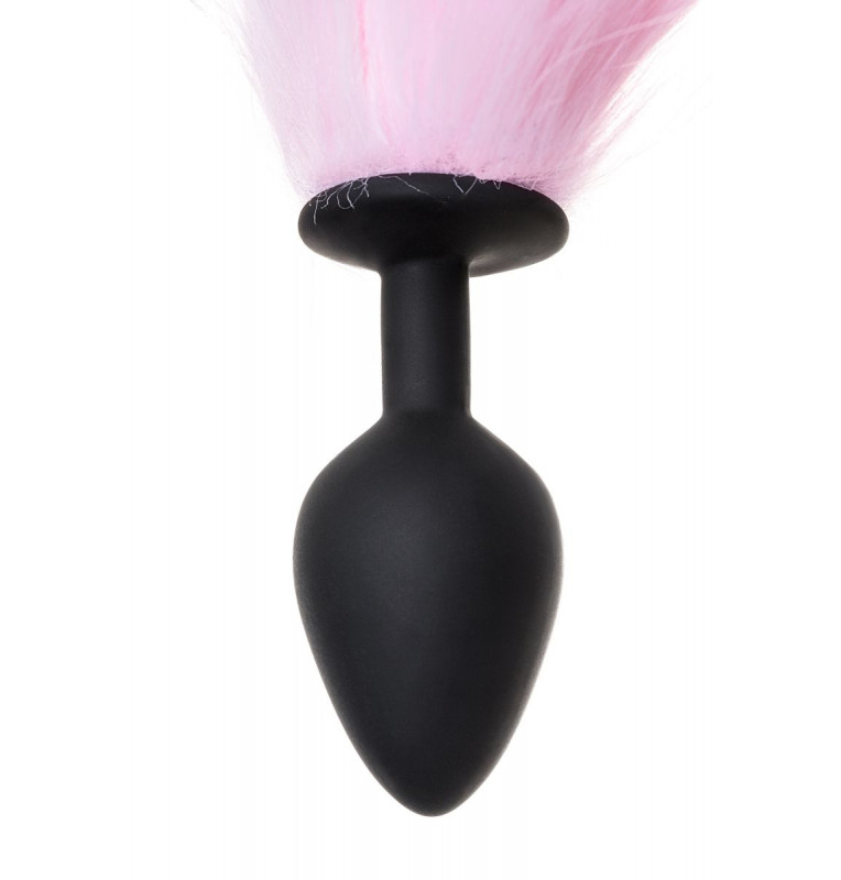 Черная анальная втулка с бело-розовым хвостом - размер M