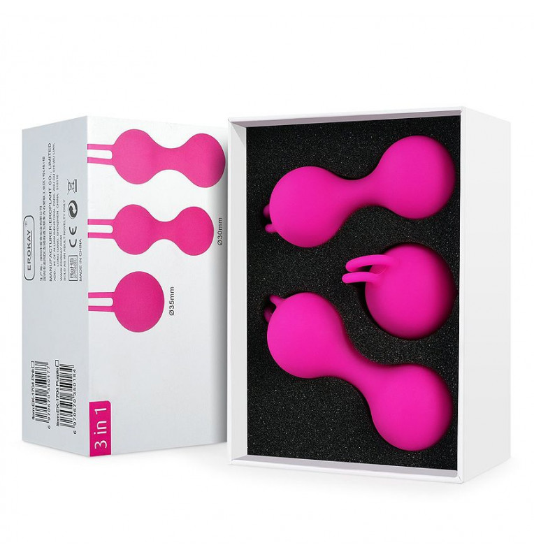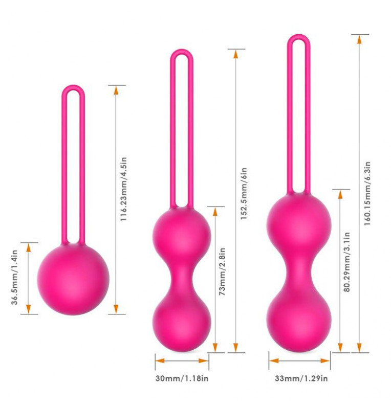 Набор вагинальных шариков для тренировки интимных мышц откроет мир новых сексуальных наслаждений! Комплекс специальных упражнений в сочетании с шариками позволит укрепить стенки влагалища, придаст им упругость и эластичность, поможет «накачать» вагинальные мышцы. Регулярные занятия с эротическим аксессуаром улучшат сексуальное здоровье, повысят качество интимной жизни. Наличие в наборе изделий как с одним, так и с двумя шариками разного диаметра позволит использовать их и только начинающим заниматься вумбилдингом, и профессионалам. Тренажеры снабжены шнурком-хвостиком, позволяющим легко вводить и извлекать шарики. Вес большого шарика - 59 грамм. Длина большого шарика - 16 см., рабочая длина - 8 см., диаметр - 3,3 см. Вес средних шариков - 52 грамма. Длина средних шариков - 15,2 см., рабочая длина - 7,3 см., диаметр - 3 см. Вес маленького шарика - 35 грамм. Длина маленького шарика - 11,6 см., диаметр - 3,6 см.