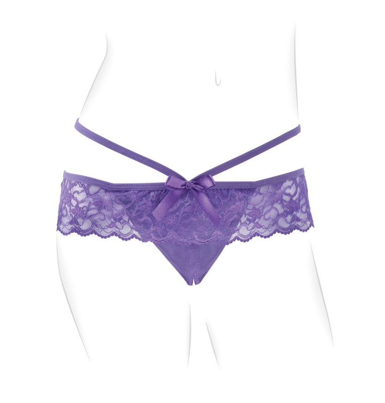 Фиолетовые трусики с вибропулей и пультом Crotchless Panty Thrill-Her