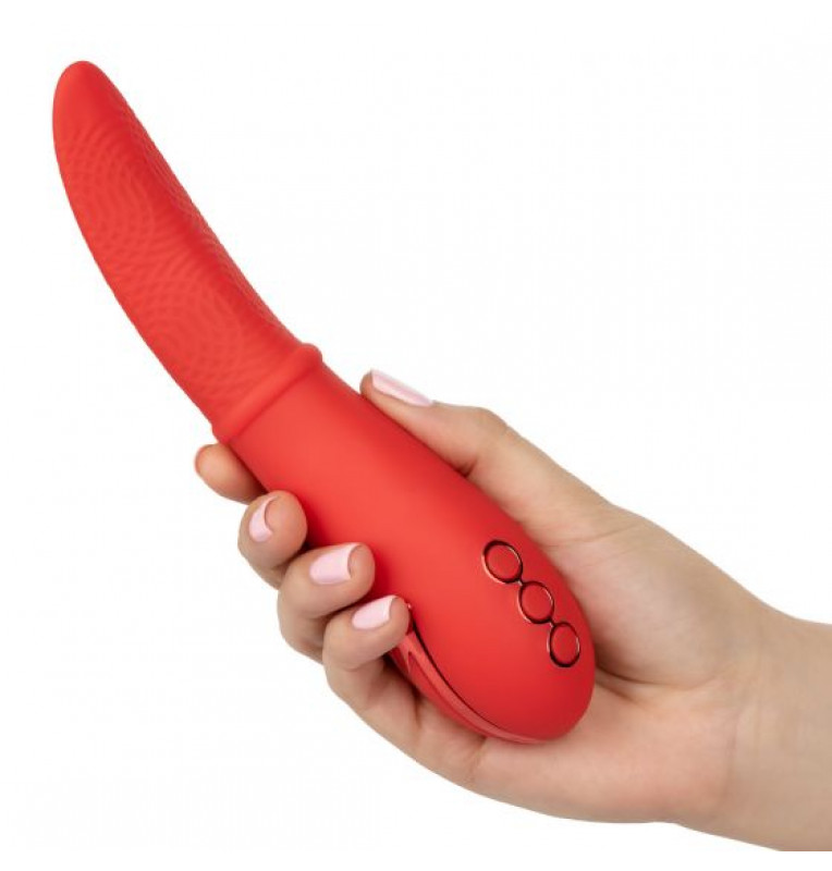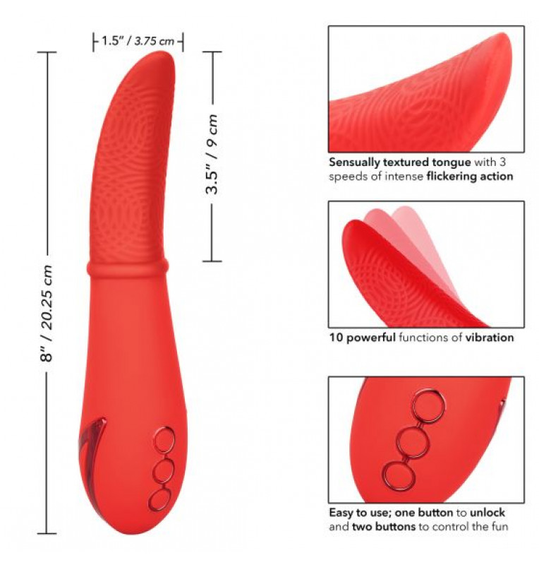 Красный вибромассажер Laguna Beach Lover с функцией «мерцающий язычок» - 20,25 см.