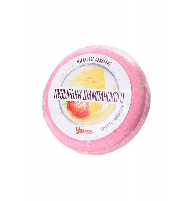 Бомбочка для ванны «Пузырьки шампанского» с ароматом клубники и шампанского - 70 гр.