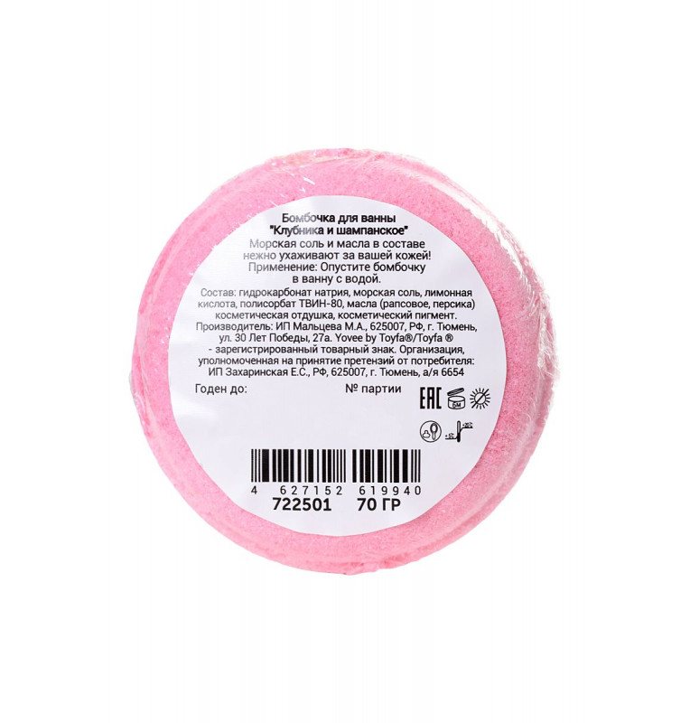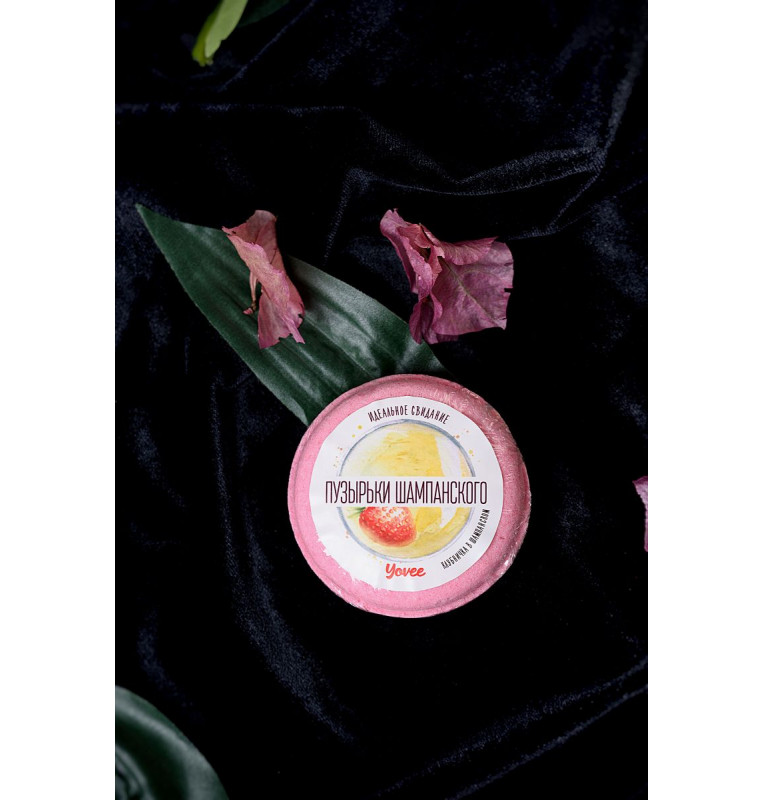 Морская соль и масла в составе нежно ухаживают за вашей кожей!Идея для свидания: если у вас есть повод для праздника или просто игривое настроение — организуйте свидание со свежей клубникой и шампанским. Пригласите вашу половинку в ванну с бурлящим шариком и насладитесь сочными ароматами и игривыми пузырьками от бомбочки!