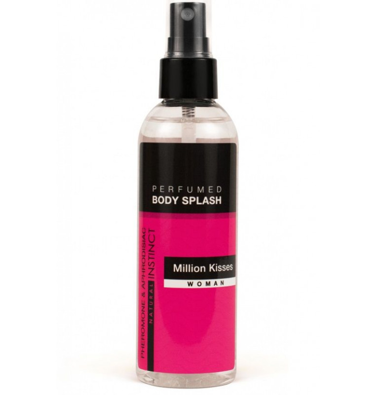 Парфюмированный спрей для тела с феромонами и афродизиаками Million Kisses для женщин. Уникальное сочетание манящего и дерзкого парфюма с феромонами и афродизиаками окутает ваше тело волшебной аурой нежного и чувственного аромата. Феромоны разбудят романтические чувства, а афродизиаки окажут благотворное влияние на интимную сферу. Аромат: фруктово-цветочный. Ноты малины, нероли, цитрусов, цветов апельсина, гардении, жасмина, белого меда и пачули. Спрей для тела можно использовать как полноценную парфюмерную воду за счет высокой концентрации парфюмерных композиций, но при этом по очень доступной цене. Кроме прекрасного аромата вы получите дополнительный уход за счет содержания в составе пантенола и аллантоина: - смягчает, - увлажняет, - регенерирует кожу, - оказывает противовоспалительное, заживляющее действие, - повышает устойчивость коллагена кожных покровов к негативному влиянию внешних факторов. Эффект: - незабываемый аромат, - прекрасное настроение, - ухоженная и красивая кожа, - больше взглядов, - привлекательность.