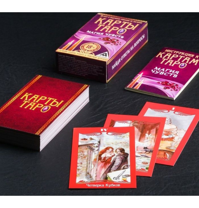 Карты Таро «Магия чувств» станут верным проводником в мир любви. Они помогут вам проанализировать отношения и не допустить возможных ошибок. Даже если вы никогда не гадали на картах, с помощью подробной инструкции найдёте ответы на главные вопросы. О чём могут поведать карты Таро: о сути отношений на данный момент, совместимости партнёров, вероятных перспективах существующих отношений. Также вы можете получить от карт совет: что изменить в отношениях, чтобы партнерам стало лучше друг с другом. Приоткройте завесу тайны над загадками прошлого, вопросами настоящего и секретами будущего! В комплекте: 78 карт, инструкция.