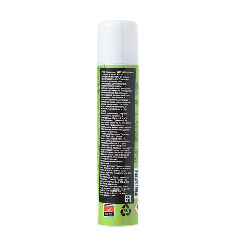 Дезодорант для интимной гигиены Intt Intimo Eros - ваш источник свежести на весь день. Подходит для ежедневного использования. Дарит ощущение свежести с тонким ароматом мяты. Просто нанесите спрей после душа на сухую кожу. Поддерживает нейтральный pH и ухаживает. Благодаря безопасной формуле без спирта обеспечивает бережный уход за интимной зоной, дезодорирует и дезинфицирует. Не вызывает аллергии. Усиливает эмоции от близости. Нежный аромат мяты раскрывается во время секса и помогает полностью раскрепоститься и отдаться страсти. Подарите себе новые ощущения с INTT.