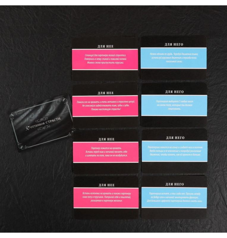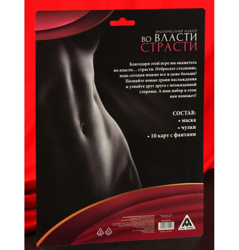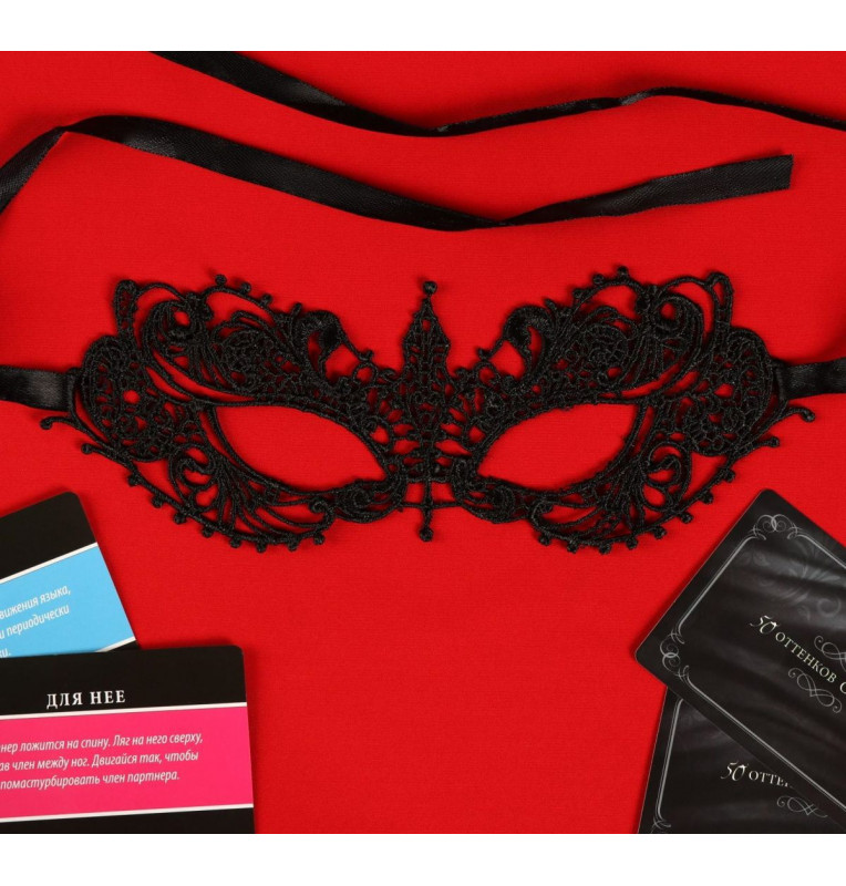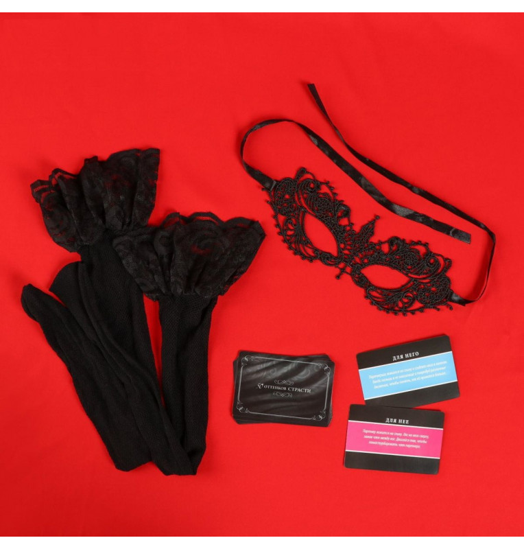 Осторожно! Вы оказались во власти страсти! Отбросьте стеснение, ведь сегодня можно всё и даже больше! Познайте новые грани наслаждения и откройте друг друга с неожиданной стороны. А этот набор вам поможет! Как использовать? Внутри вас ждёт 10 карт с фантами — для него и для неё. Разделите карточки на две колоды, перемешайте каждую по отдельности и сложите рубашкой вверх. По очереди вытягивайте карточки, зачитывайте задания и выполняйте их. Также в комплекте есть маска и чулки. Они помогут сделать образ партнёрши более пикантным. В комплекте: 10 карт с фантами, маску, чулки.