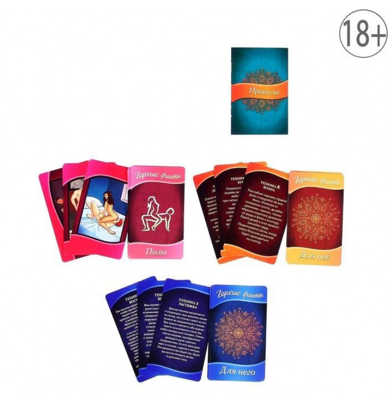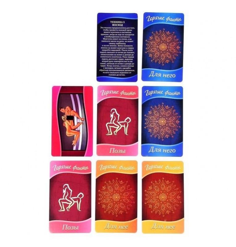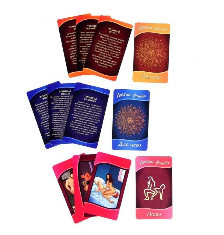 Мы создали эти фанты специально для вашей пары. Окунитесь в мир соблазна и ощутите себя на вершине блаженства! Представьте: вы открываете коробку и предаётесь восточным ласкам вместе со своим партнёром. Доведите друг друга до экстаза: фанты таят в себе секреты божественного наслаждения! Попробуйте новые техники получения удовольствия: те, что дарят друг другу влюблённые пары на Востоке. Секрет в массаже. Пары взаимодействуют друг с другом при помощи нежных и сильных прикосновений. Массажи «Лингама» и «Йони», предназначенные для него и для неё, вознесут вас до небес! Все техники подробно описаны на фантах — вытягивайте их и узнавайте, в чём секрет блаженства. А карточки с позами станут поводом для особенного финала ночи любви. В комплекте: 10 карт с ласками для неё «Йони» 10 карт с ласками для него «Лингам» 20 карт «Позы любви» правила.