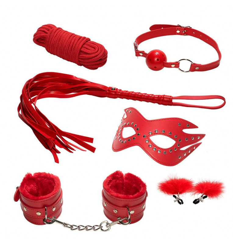 Эротический набор БДСМ из 6 предметов в красном цвете